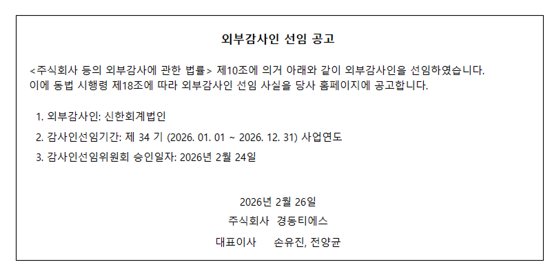 제34기 외부감사인 선임 공고